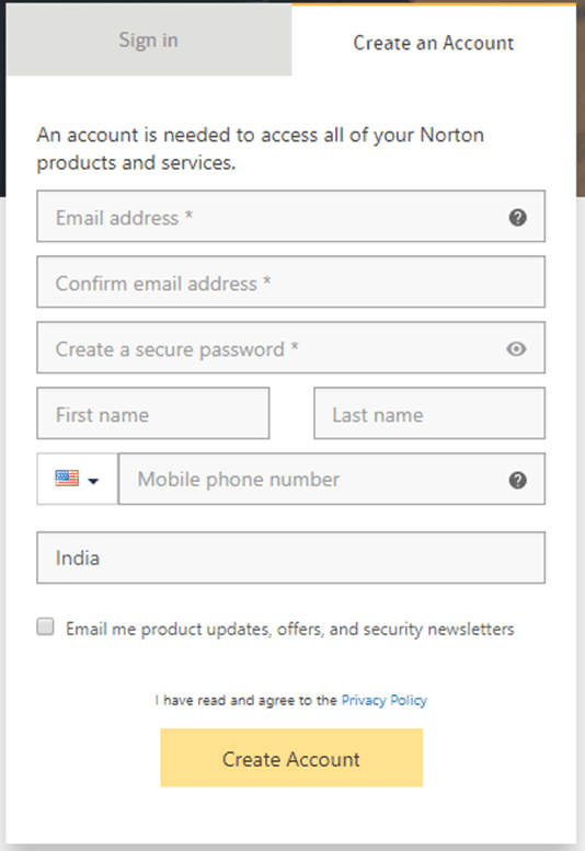 - Accede a tu cuenta de Norton o crea una de no disponer de ella.
