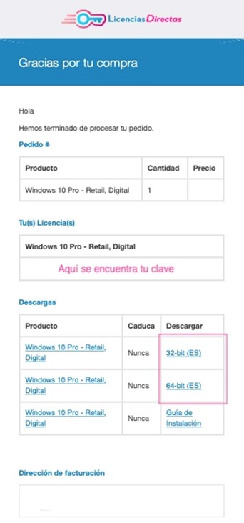En caso de ser cliente de Licencias Directas, encontrarás tanto la factura como la transferencia de licencia en tu correo electrónico.