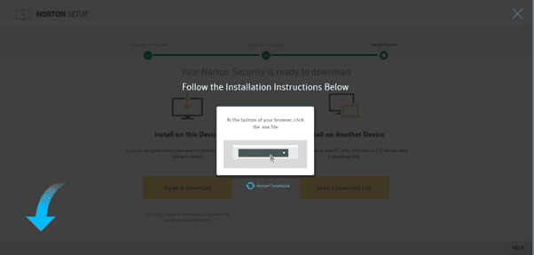 - Cuando hayas hecho clic en aceptar y descargar, el archivo “NortonNSDownloder.exe” se comenzará a descargar en la esquina inferior izquierda.