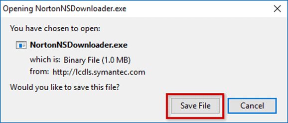 - Una vez finalizada la descarga, haz doble clic en el archivo que ha descargado para iniciar el instalador de Norton y, a continuación, haz clic en "abrir".